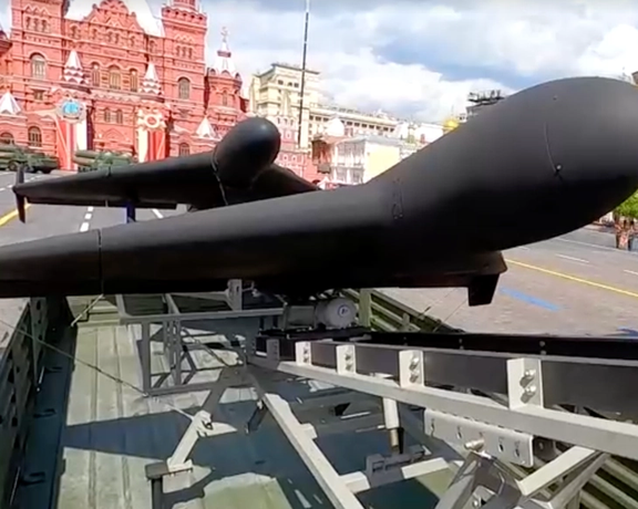 وبحسب قناة تلفزيونية روسية رسمية، فإن طائرة بدون طيار من طراز "شاهد-136"، المعروفة في روسيا باسم "جران-2"، وطائرة بدون طيار من طراز "لانسيت" كانتا من بين المعدات العسكرية المعروضة في الحفل.