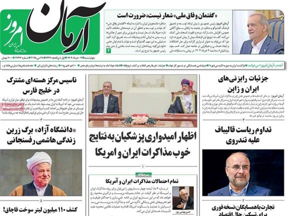 اهتمت الصحف الإيرانية الصادرة اليوم الأربعاء 28 مايو (أيار) بزيارة الرئيس الإيراني مسعود بزشكيان إلى سلطنة عمان، والتوقيع على 18 وثيقة تعاون بين الجانبين.