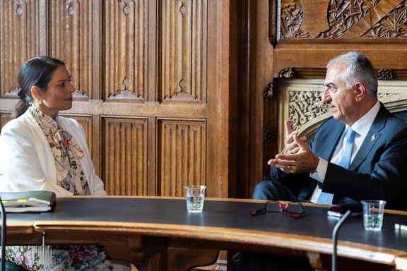 نشر ولي عهد إيران السابق رضا بهلوي صورًا للقاء جمعه مع بريتي باتيل، وزيرة الداخلية البريطانية السابقة، عبر منصة "إكس"، وكتب: "لا يمكن لبريطانيا أن تسمح للحرس الثوري الإيراني بتهديد مواطنيها على أراضيها".
