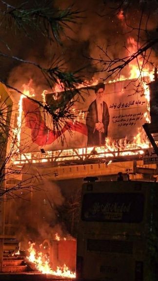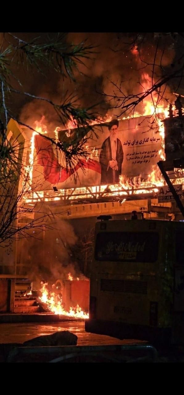 إشعال النار بصورة كبيرة للمرشد الإيراني علي خامنئي