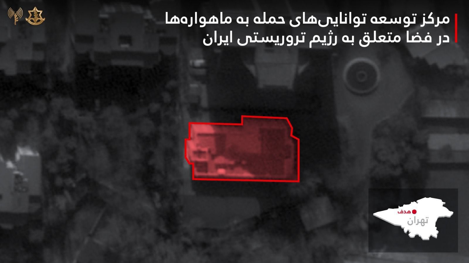 ووفقًا لبيان الجيش الإسرائيلي، كانت هذه المنشأة تُستخدم لتطوير البرامج العسكرية الفضائية، بما في ذلك تصنيع القمر الصناعي «جمران-1» الذي أنتجته الصناعات الإلكترونية التابعة لوزارة الدفاع في إيران، وأطلقه الحرس الثوري الإيراني إلى الفضاء في سبتمبر (أيلول) 2024.