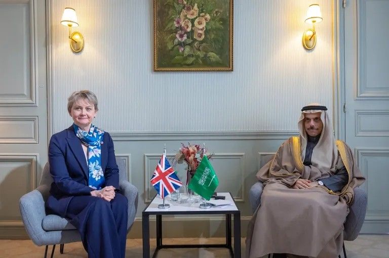 التقى وزير الخارجية السعودي، الأمير فيصل بن فرحان، نظيرته البريطانية، إيفيت كوبر، حيث بحث الجانبان خلال الاجتماع العلاقات الثنائية، إلى جانب مناقشة التطورات الأخيرة في المنطقة والجهود المبذولة بشأنها، والمرتبطة بتداعيات الحرب في إيران.