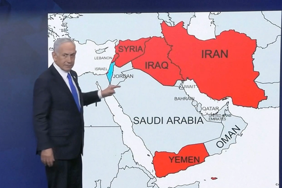 وخلال حديثه، وأمام خريطة للشرق الأوسط تم تمييز إيران فيها باللون الأحمر، قال نتنياهو: "لقد أرادوا خنقنا ونحن نخنقهم"، مضيفًا: "لقد وجهنا لهم ضربات، ولا يزال لدينا المزيد لنقوم به".