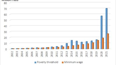 The impact on ordinary people has been devastating. While the minimum income needed to live just above poverty, as the rial lost value, has grown 70-fold in the past 20 years, wages and salaries have increased only 38-fold. While blue collar workers earn around $100-120 per month, office workers make $150-180. The minimum monthly income needed for a family of 3.3 people is $400.