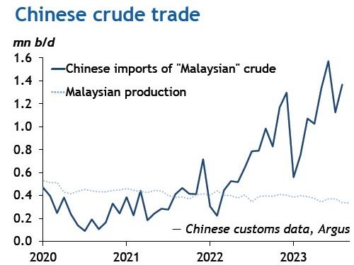 On the other hand, international tanker tracking companies say a huge amount of Iranian oil is sold to China by middlemen and brokers, by ship-to-ship transfers in and the cargoes mostly are rebranded as Malaysian oil. The transfers take place in international waters, and apparently Malaysia does not interfere.