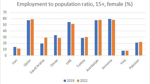 Even in the traditionally conservative Saudi Arabia, which had a comparable employment ratio with Iran in early-2010s, the figure has now increased to more than 29%, surpassing Iran by 2.5 times. A similar situation is observed in Oman.