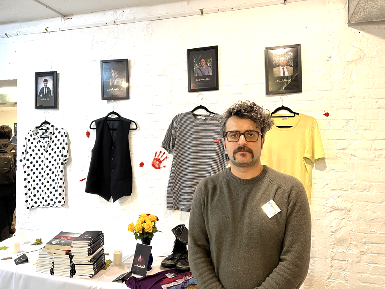 Similarly, a jacket worn by 17-year-old protester Artin Rahmani killed during the same uprising on 16 November 2022 in Izeh, Southwestern Iran was on displayed.