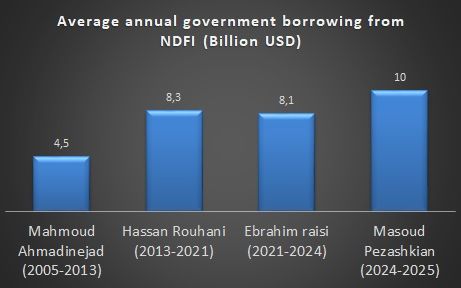 According to data from the Parliament Research Center, between the establishment of the National Development Fund (NDF) in 2011 and March 2024, about 82% of its $161 billion in revenue has been spent. Notably, 88% of the loans disbursed by the fund went to the government and public institutions, including the Islamic Revolutionary Guard Corps (IRGC). In effect, a fund intended as a savings mechanism for oil revenues has instead served as a financial lifeline for inefficient state entities.