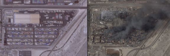 Satellite images taken before and after the explosion at Iran’s Shahid Rajaei port show the blast’s impact on the area, with smoke rising over the site days after the incident.