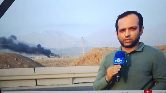 The state TV correspondent reported the strike on Natanz as smoke rose from the site behind him.