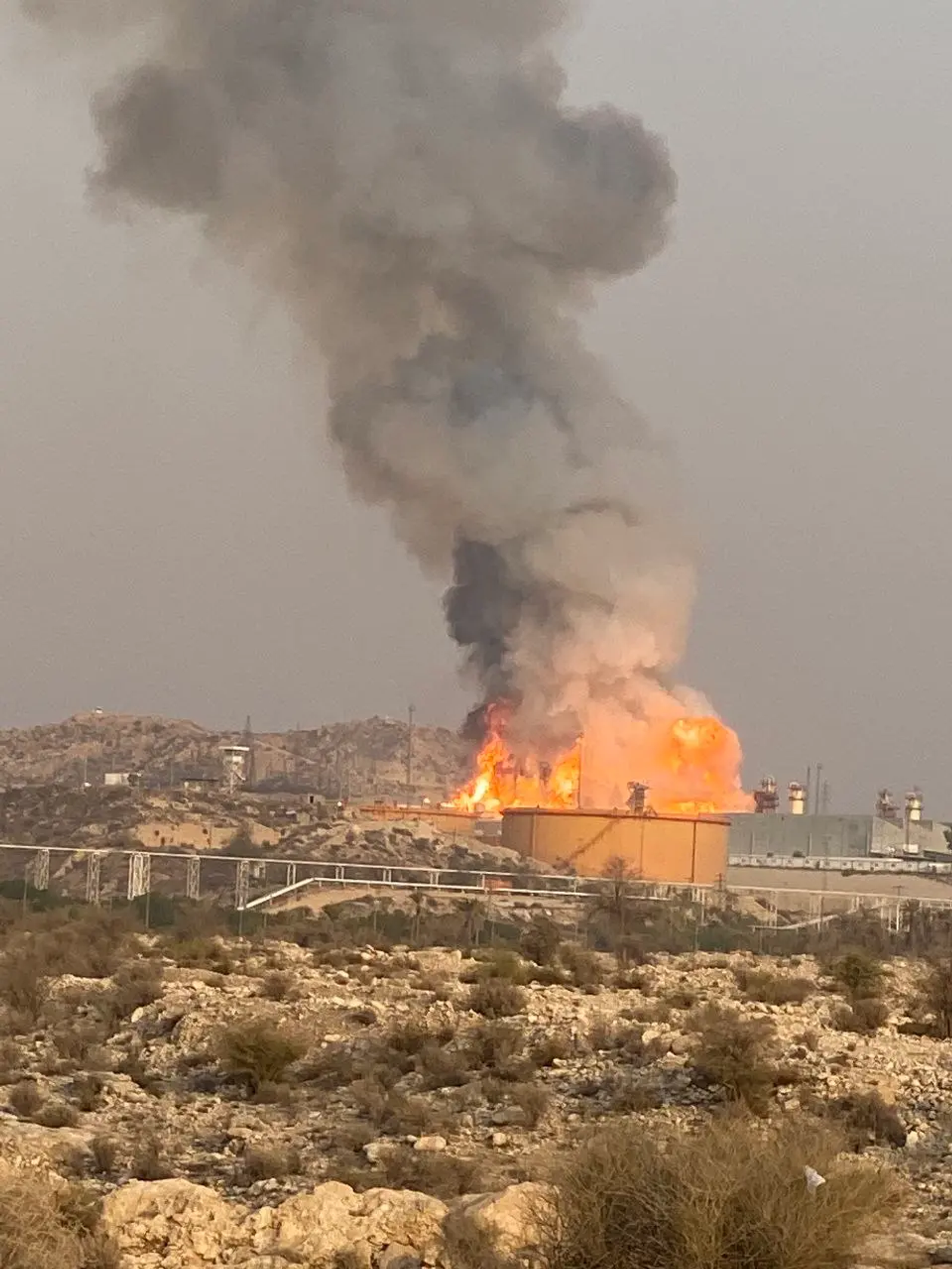 While Iran says the fire at the Fajr Jam refinery has been contained, videos show it is still burning following the Israeli airstrike.
