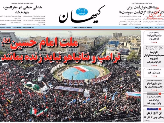 Kayhan newspaper, overseen by a representative of Ali Khamenei, published a front-page article threatening US and Israeli leaders Donald Trump and Benjamin Netanyahu with death, saying that they “should not remain alive.”