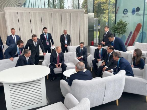 Russia’s President Vladimir Putin was seen talking with Iran’s nuclear chief Mohammad Eslami and IAEA chief Rafael Grossi on the sidelines of the international forum World Atomic Week in Moscow on Thursday.