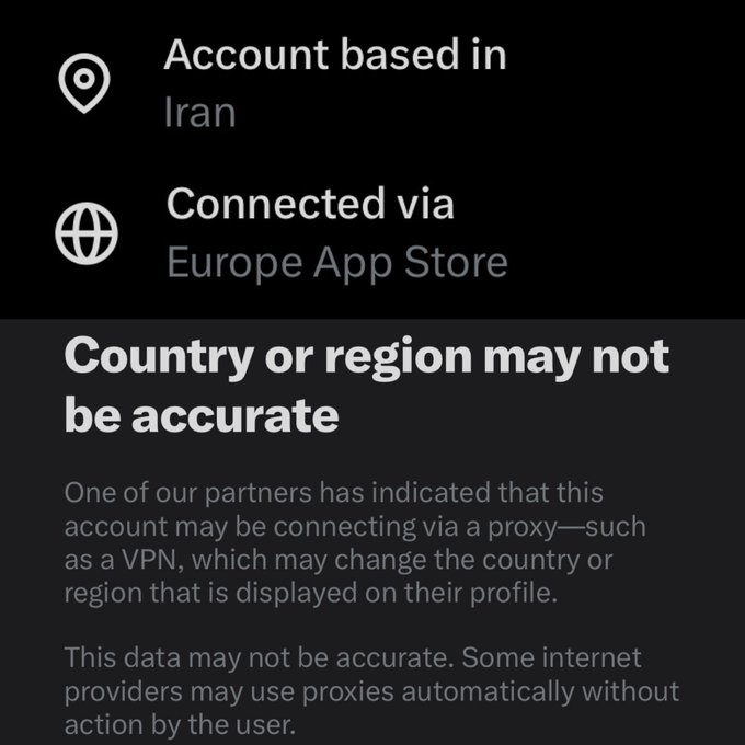 “If the location shows Iran without an alert icon, it usually means the user is reaching X with an Iranian IP.”