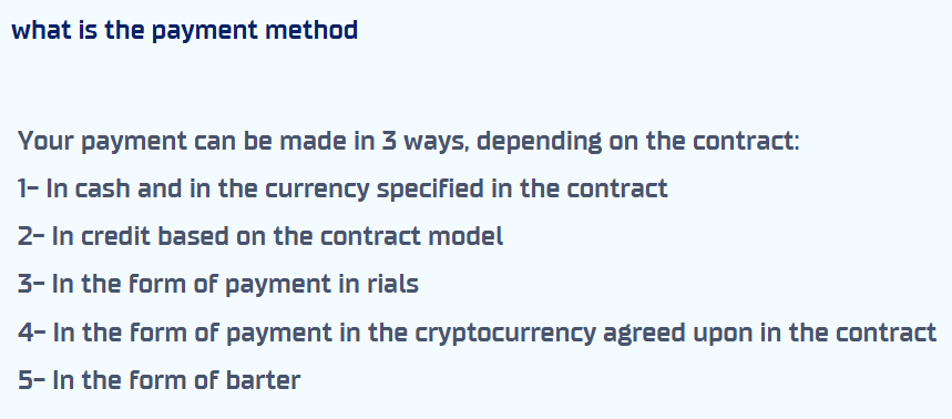 The portal’s payment terms say contracts can be settled using “digital currencies,” local currencies in the buyer’s country and barter arrangements, alongside more traditional bank transfers.