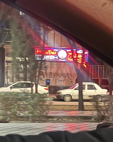 A photo obtained by Iran International shows the slogan “Long Live the King” sprayed on the door of a store in Isfahan, central Iran.