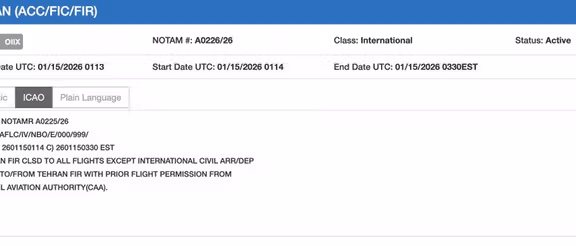 Iran has extended a temporary closure of its airspace to most flights, according to an aviation notice issued early Thursday amid fears of a US attack.