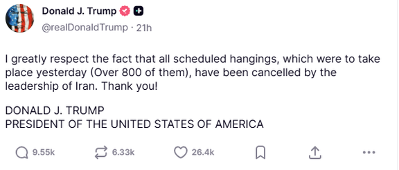 “Instead of addressing the country’s real challenges, the Islamic Republic chooses to impose silence and isolation, underscoring how little confidence it has in its own legitimacy,” the post said.