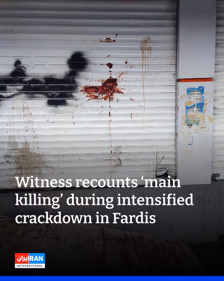 A witness to protests in Fardis, Alborz province, said the “main killing” occurred on Friday, January 9, when security forces intensified their crackdown and opened fire with live ammunition on protesters after initially allowing the gathering to proceed.