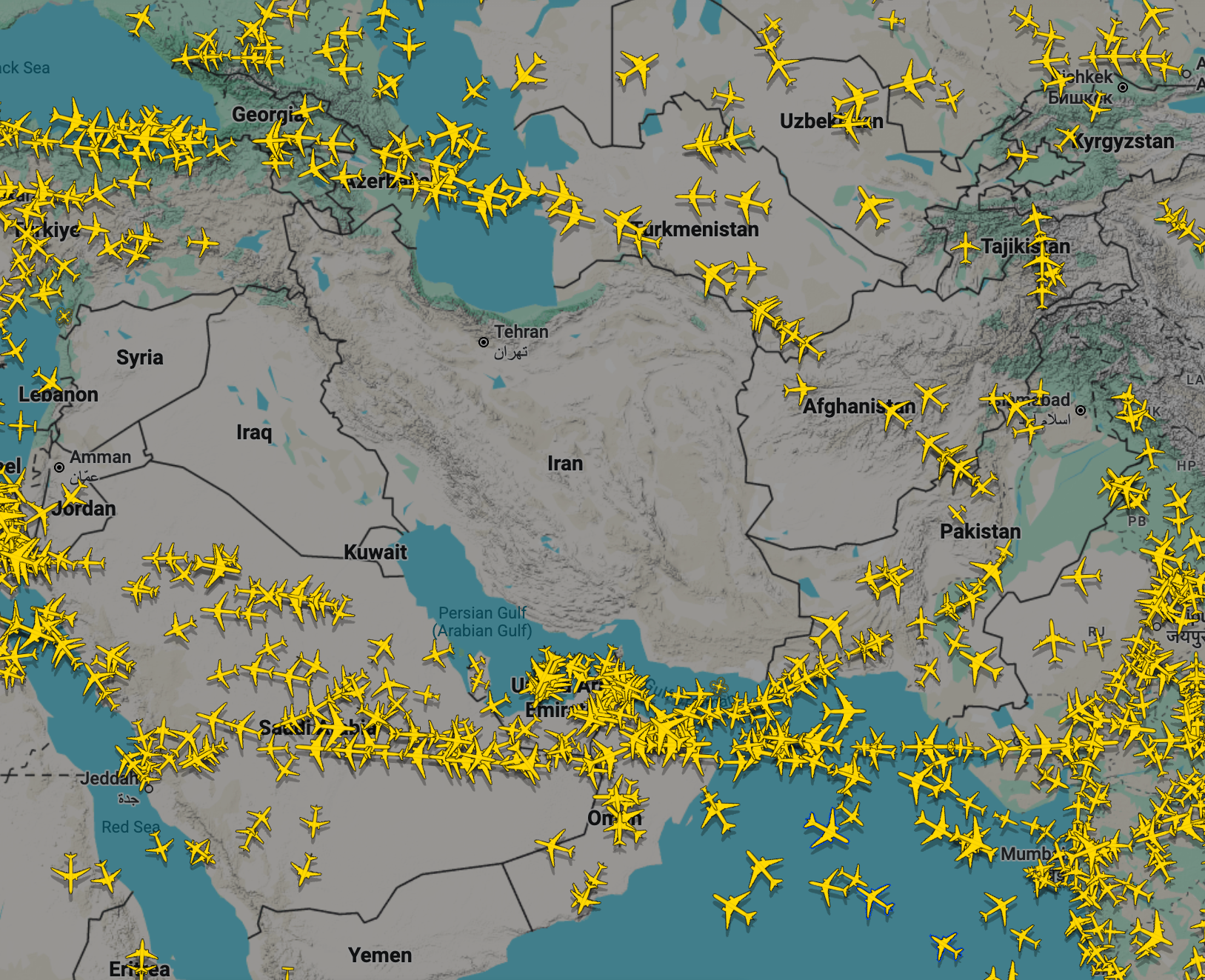 Iran’s airspace was largely empty of civilian aircraft on Saturday following joint US and Israeli strikes, according to flight tracking data from Flightradar24, as several countries in the region closed their skies and major airlines canceled flights.