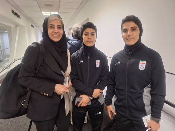 Semi-official news agency ISNA on Saturday posted an image of players Mona Hamoudi and Zahra Sarbali as well as the coaching staffer Zahra Meshkin-Kar apparently minutes before traveling to Malaysia to join their team members.
