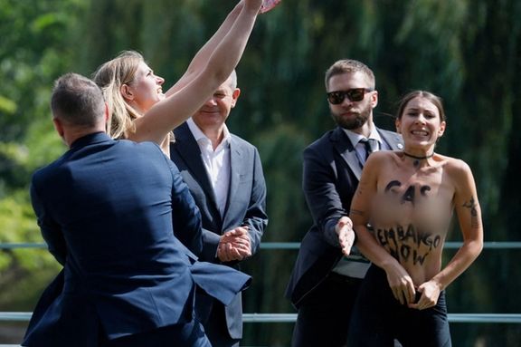چند زن معترض با بالاتنه برهنه هنگامی که اولاف شولتز، صدراعظم آلمان، برای سخنرانی آماده میشد، وارد مکانی شدند که او حضور داشت. معترضان که شعار «تحریم گاز، هم اکنون» را روی تنشان نوشته بودند توانستند به شولتز نزدیک شوند. طبق آمار، دو سوم آلمانیها از عملکرد صدراعظم راضی نیستند.
