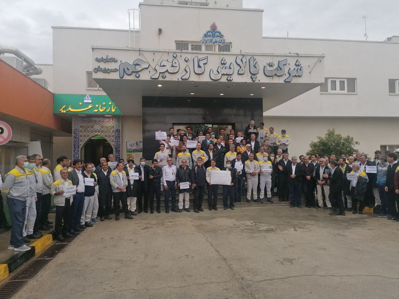 همچنین کارکنان رسمی صنعت نفت شاغل در شرکت نفت‌ و گاز پارس تجمع اعتراضی برگزار کردند.