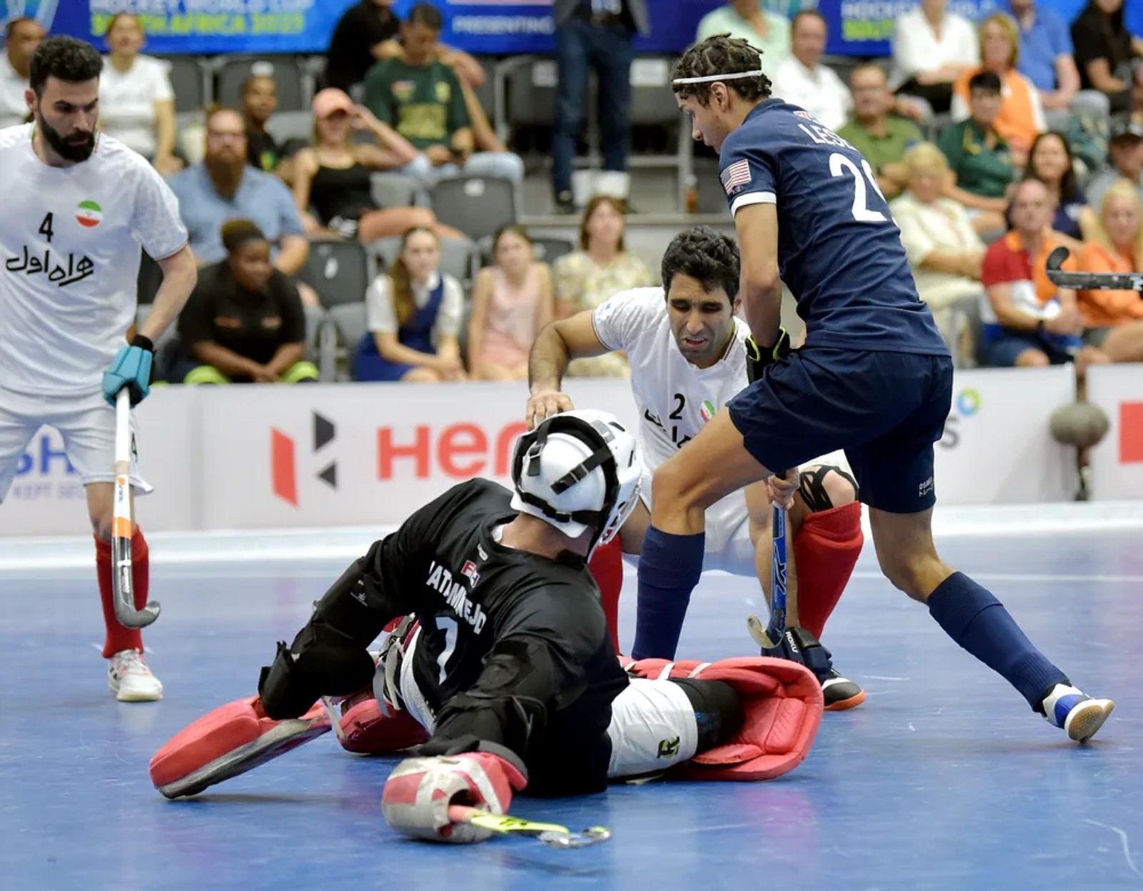 در آخرین روز از رقابتهای جام جهانی هاکی داخل سالن در آفریقای جنوبی، تیم ایران امروز شنبه ۲۲ بهمن در مرحله ردهبندی به مصاف تیم آمریکا رفت و نتیجه این دیدار ۴ - ۴ مساوی شد و ایران در ضربات پنالتی(شوتاوت) تیم آمریکا را شکست داد و در جایگاه سوم ایستاد.