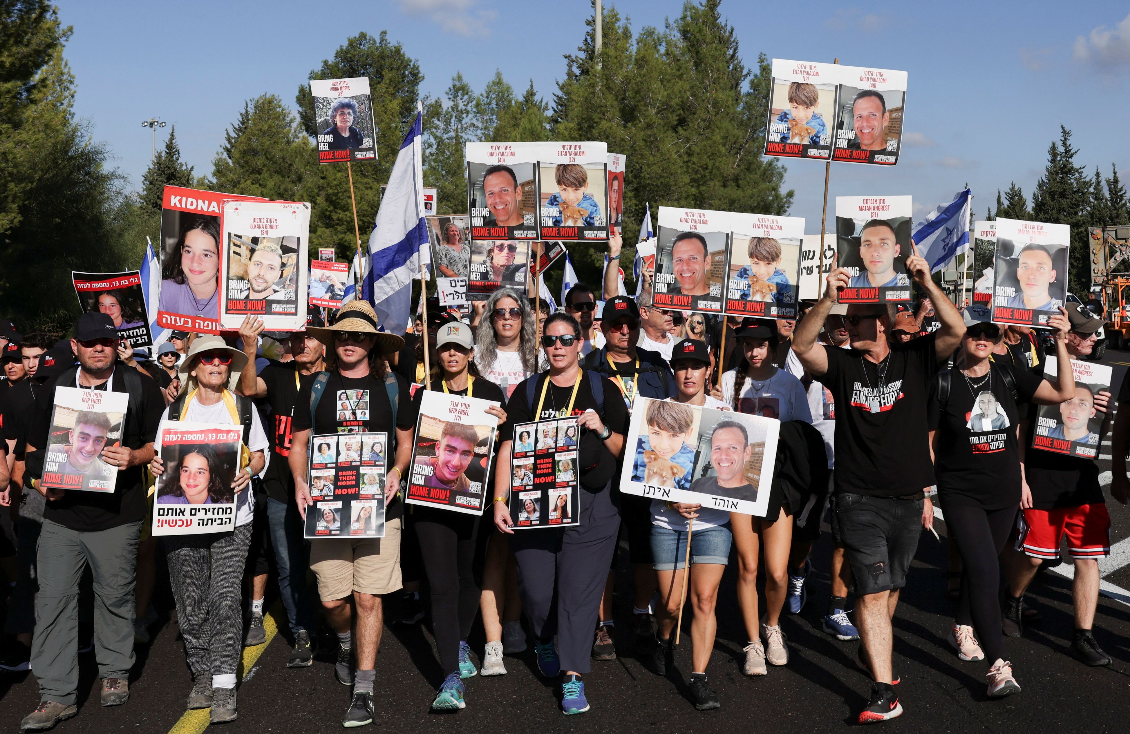 خانوادههای ۲۳۹ گروگان حماس صبح جمعه چهارمین روز راهپیمایی خود را به سمت پارلمان اسرائیل (کنست) در اورشلیم آغاز کردند. این راهپیمایی روز سهشنبه از مرکز تلآویو آغاز شد و عصر روز ۲۷ آبان با حضور این افراد مقابل ساختمان کنست به پایان میرسد.
