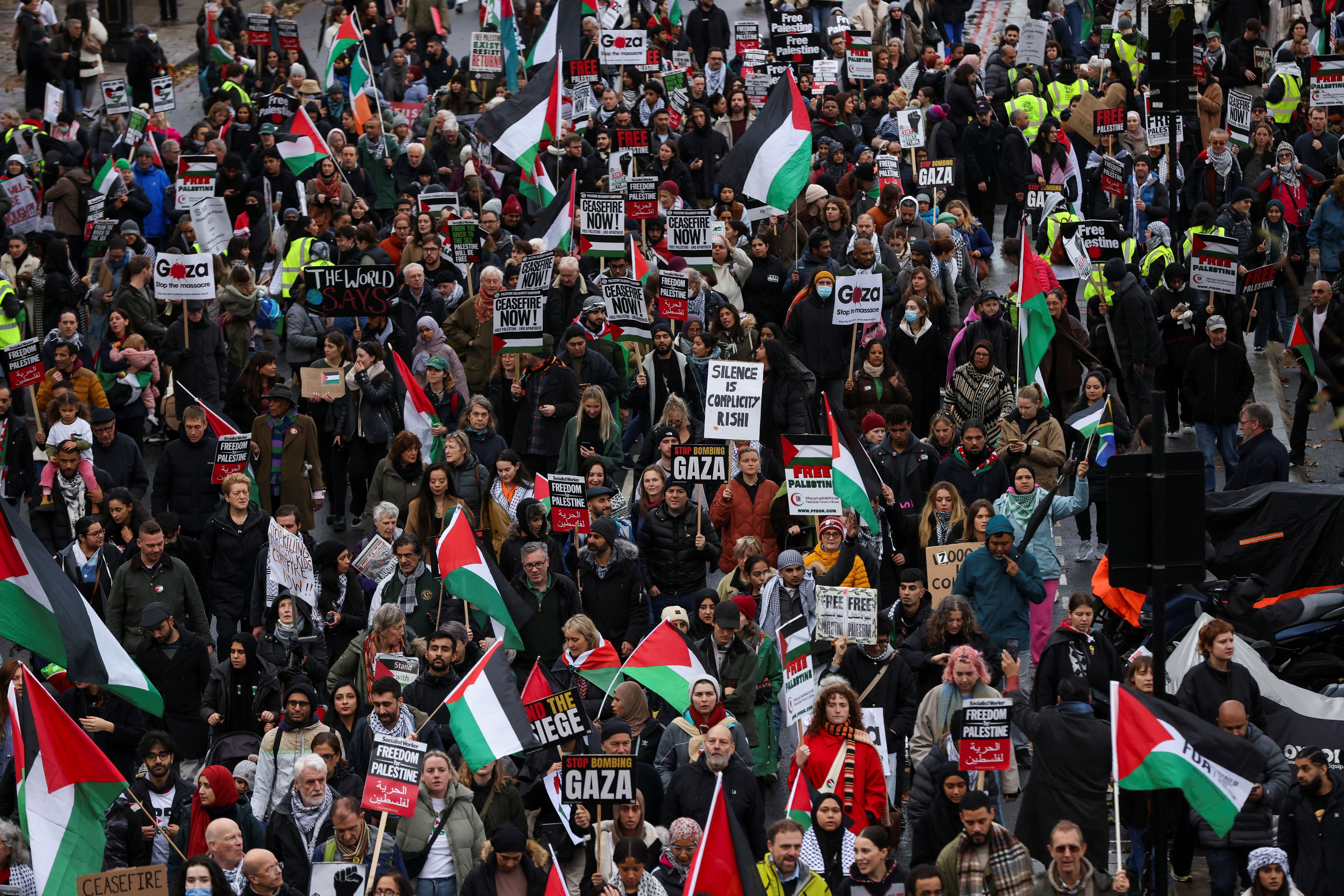 هزاران نفر از حامیان فلسطین با برپایی تظاهراتی در لندن خواستار برقراری فوری آتشبس در نوار غزه شدند.