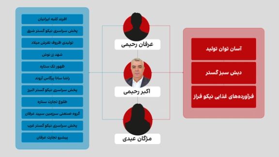 این فهرست نشان میدهد اکبر رحیمی با کد ملی ۰۰۵۱۸۱۱۹۰۱ و مژگان عیدی با کد ملی ۰۰۵۸۷۸۵۸۴۱، از طریق سه شرکت دبش سبز گستر با شناسه ملی ۱۰۱۰۲۷۶۳۱۲۸، فرآوردههای غذایی نیکو فراز به شناسه ملی ۱۰۱۰۲۴۸۹۷۵۰ و شرکت آسان توان تولید به شناسه ملی ۱۰۸۶۱۸۰۶۱۶۲ از سال ۱۳۹۷ تا اردیبهشت ۱۴۰۰ مجموعا حدود ۴۶ میلیون یورو برابر حدودا ۴۳ میلیون دلار ارز نیمایی دریافت کردهاند.