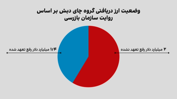 روایتهای رسمی درباره فساد چای از نظر عدد و رقم به شدت مبهماند اما حتی اگر سخنان رییس سازمان بازرسی را یکسره بپذیریم، مالک چای دبش دو میلیارد دلار ارز نیمایی دریافت کرده که رفع تعهد در مقابل آن انجام نداده. یعنی به اندازه دو میلیارد دلار دریافتی، کالا به کشور وارد نکرده است.
