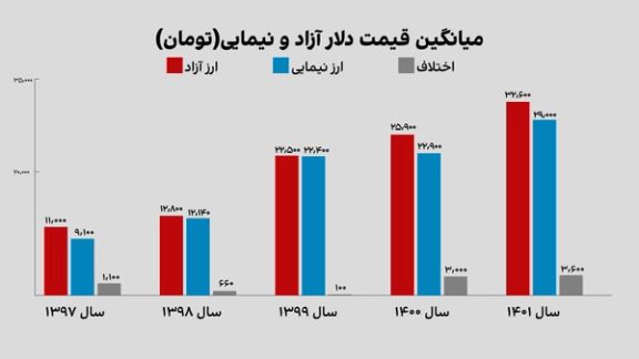 این نمودار میانگین قیمت دلار آزاد و نیمایی در زمان مورد بحث است که گفته میشود فساد در آن اتفاق افتاده است.