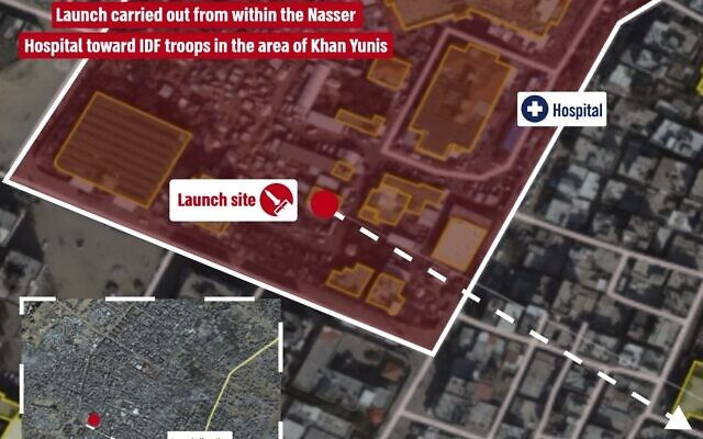 ارتش اسرائیل در بیانیهای اعلام کرد حماس اوایل هفته جاری از داخل بیمارستان ناصر در خان یونس به سمت سربازان اسرائیلی که در نوار غزه بودند، راکت پرتاب کرده است.