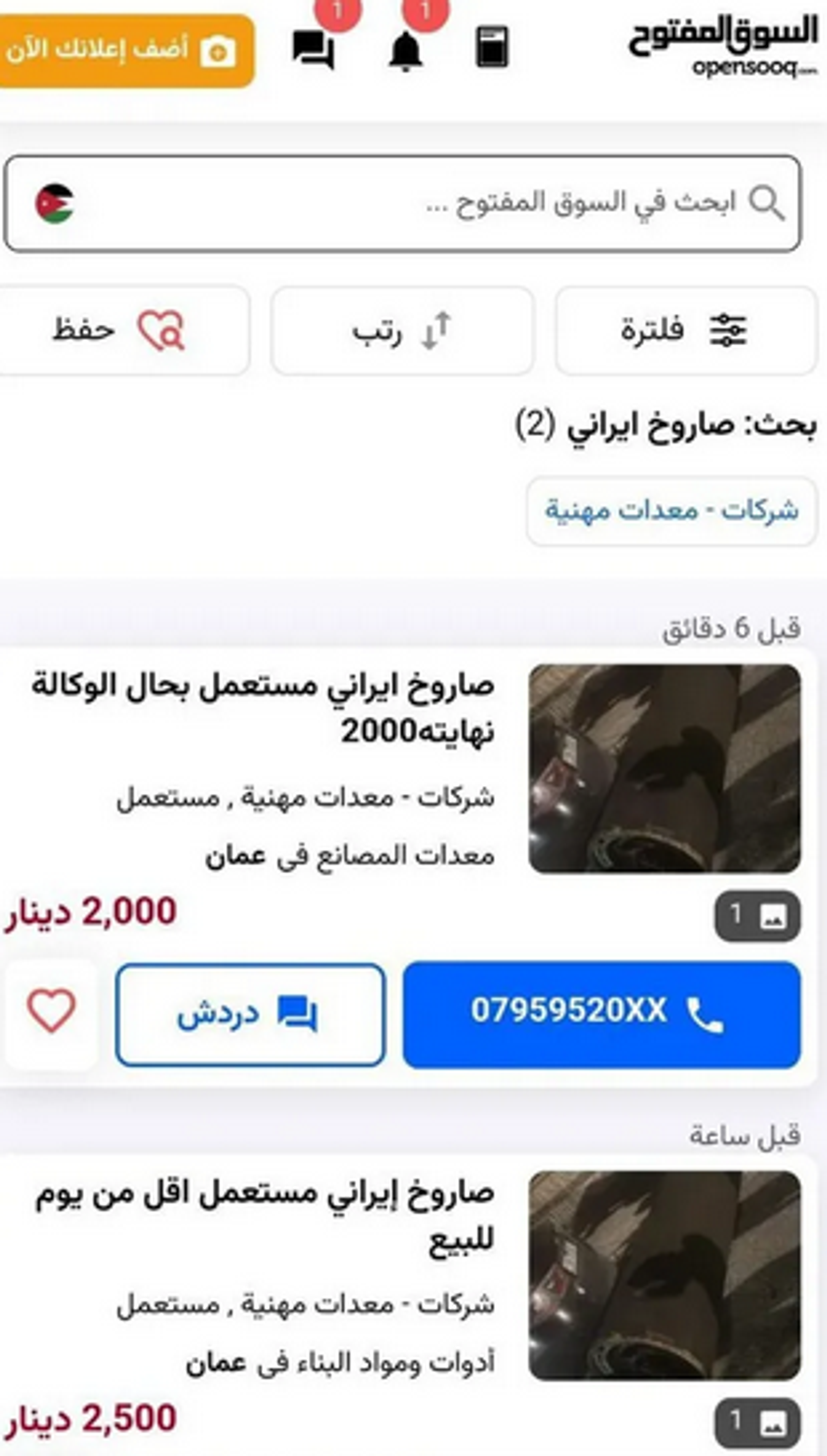 بر اساس این گزارش، اردنیها این لاشهها را دست مایه طنز قرار دادند. یکی از شهروندان در یکی از آگهیهای فروش با انتشار تصویری از یک لاشه موشک نوشته است: «موشک بالستیک ایرانی دست دوم کمکارکرد برای فروش.»