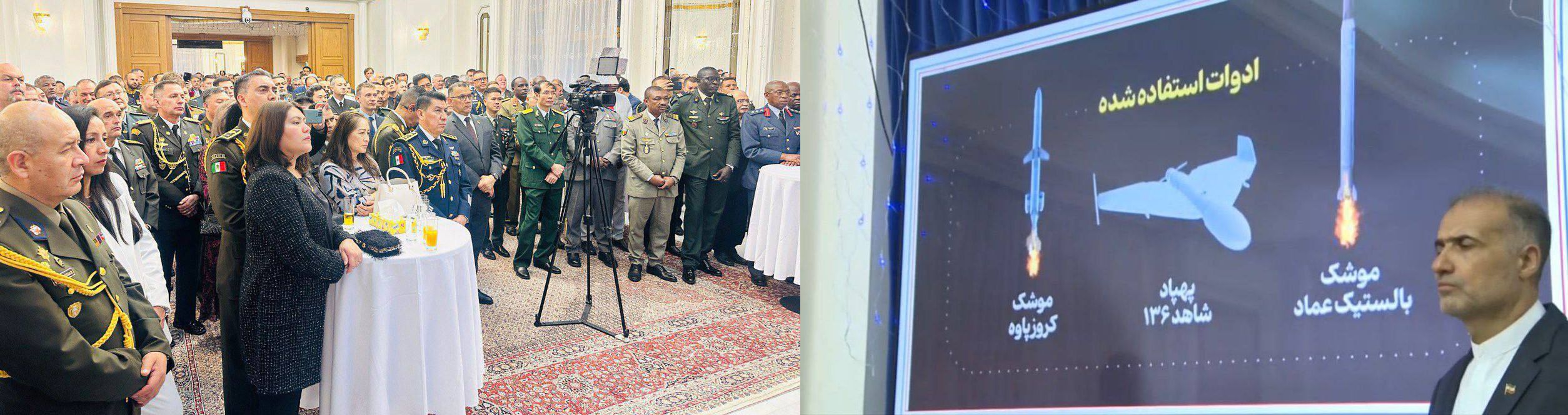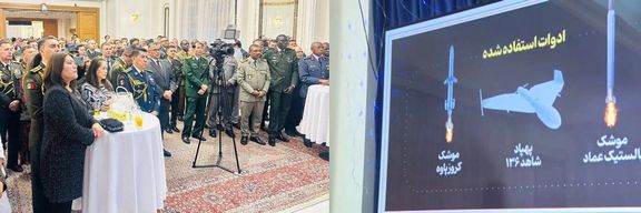 تصاویر منتشر شده از این مراسم نشان میدهد که جمهوری اسلامی بخشی از آن را به ارائه جزئیاتی از حمله پهپادی و موشکی به اسرائیل اختصاص داده است.