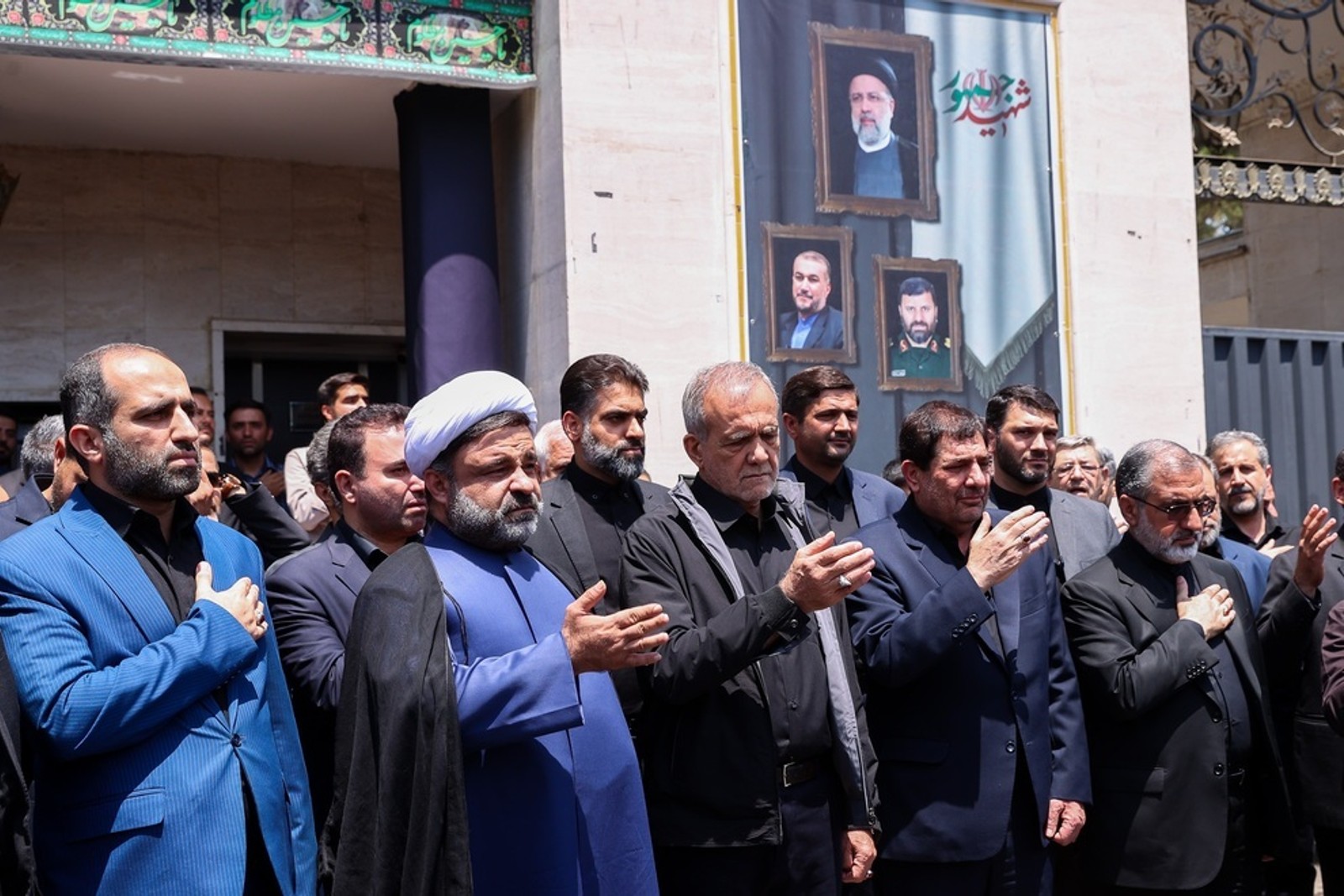 ظهر ۲۵ تیر ماه، مصادف با روز تاسوعا، پزشکیان به هیات نهاد ریاستجمهوری رفت. او زیر تصاویری از ابراهیم رئیسی و حسین امیرعبداللهیان، رییسجمهوری و وزیر امور خارجه کشته شده در سقوط هلیکوپتر، در مقابل نهاد ریاستجمهوری در دسته این نهاد شرکت کرد.