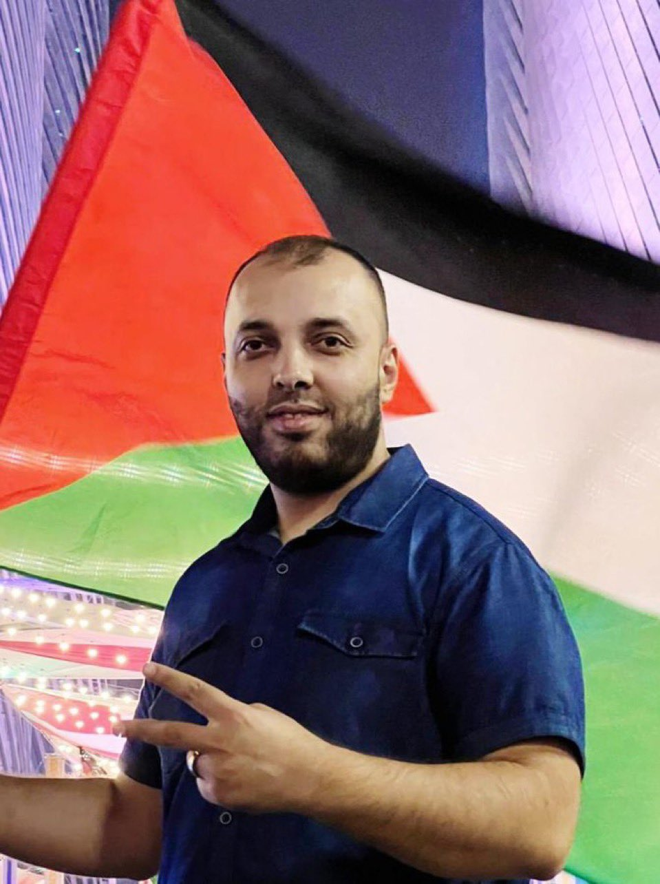 در تصویر زیر، ابو شعبان در کنار پرچم فلسطین دیده میشود.