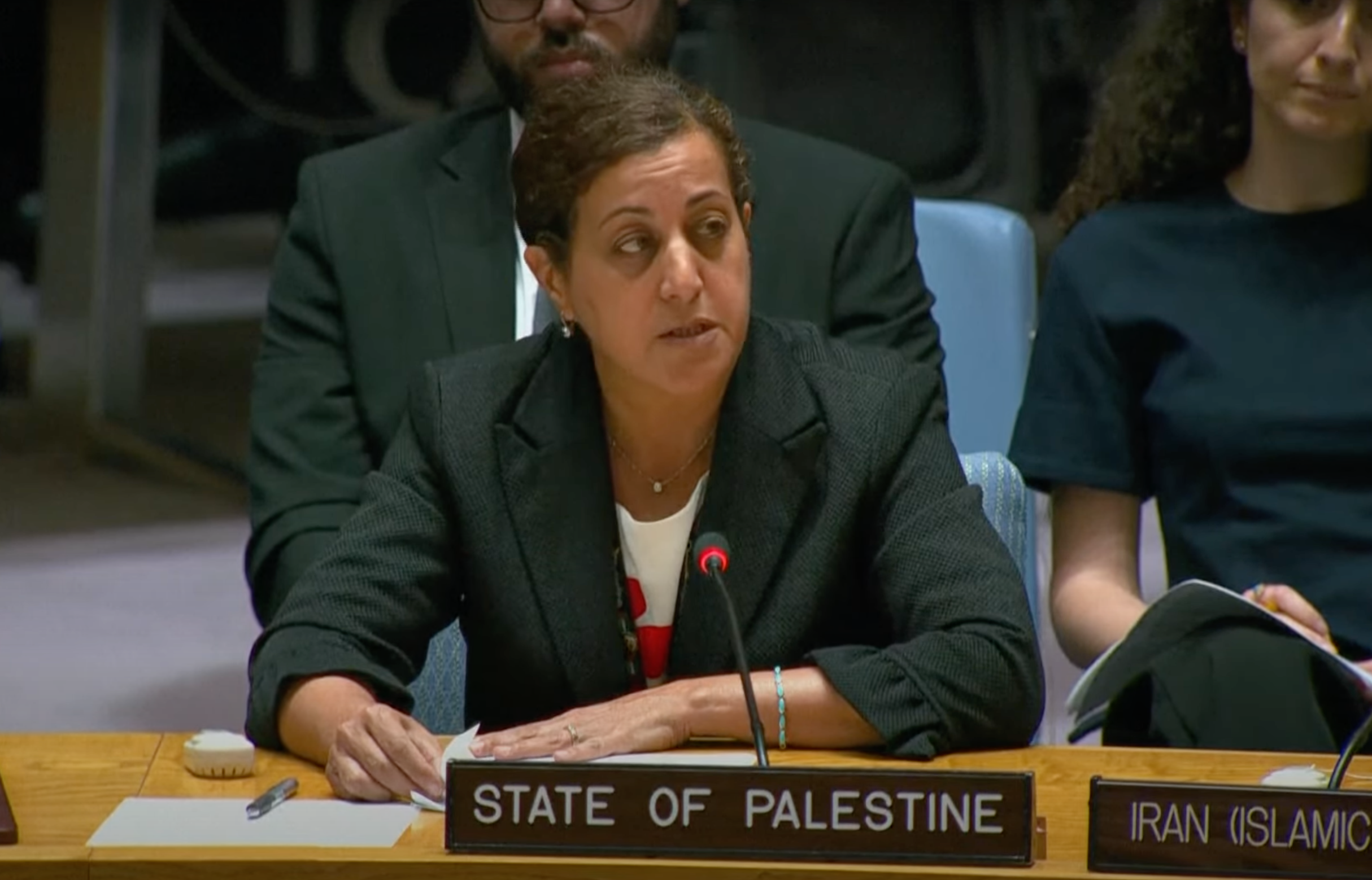 نماینده فلسطین در پایان صحبتهایش گفت «ترور هنیه و سایر جنایتهای اسرائیل قبل و بعد از این حمله نشان میدهد که اسرائیل مصمم است خواست شورای امنیت و جامعه بینالمللی را نادیده بگیرد و به ویران کردن غزه، اشغالگری و سایر سیاستهای نژادپرستانه، تبعیضآمیز و نفرتانگیز خود ادامه دهد.»