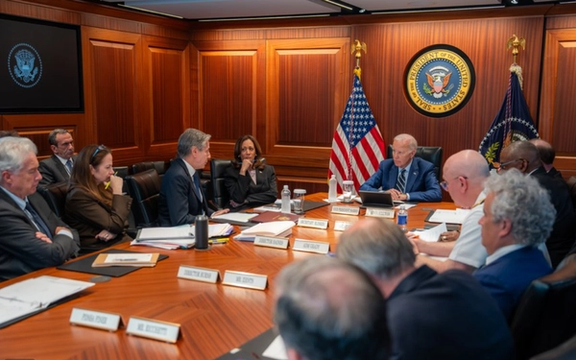جو بایدن، رییسجمهور آمریکا با انتشار پستی در شبکه اجتماعی ایکس نوشت او به همراه کامالا هریس، معاونش، در جلسه با تیم امنیت ملی کاخ سفید در اتاق وضعیت، در جریان تحولات خاورمیانه قرار گرفتهاند.