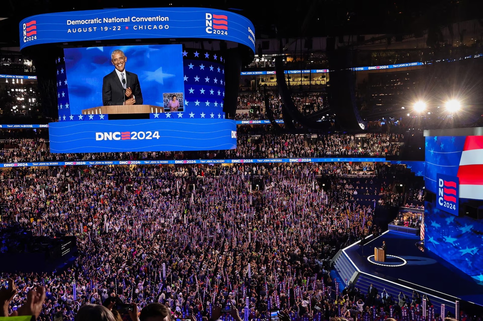 در شامگاه سه‌شنبه ۳۰ مرداد، باراک و میشل اوباما، رییس‌جمهوری و بانوی اول سابق آمریکا، چاک شومر رهبر دموکرات‌ها در سنا، برنی سندرز سناتور مستقل و ضمن حملات شدید به دونالد ترامپ، مردم را به رای دادن به کامالا هریس فراخواندند و او را شخصیتی شایسته رهبری آمریکا دانستند.