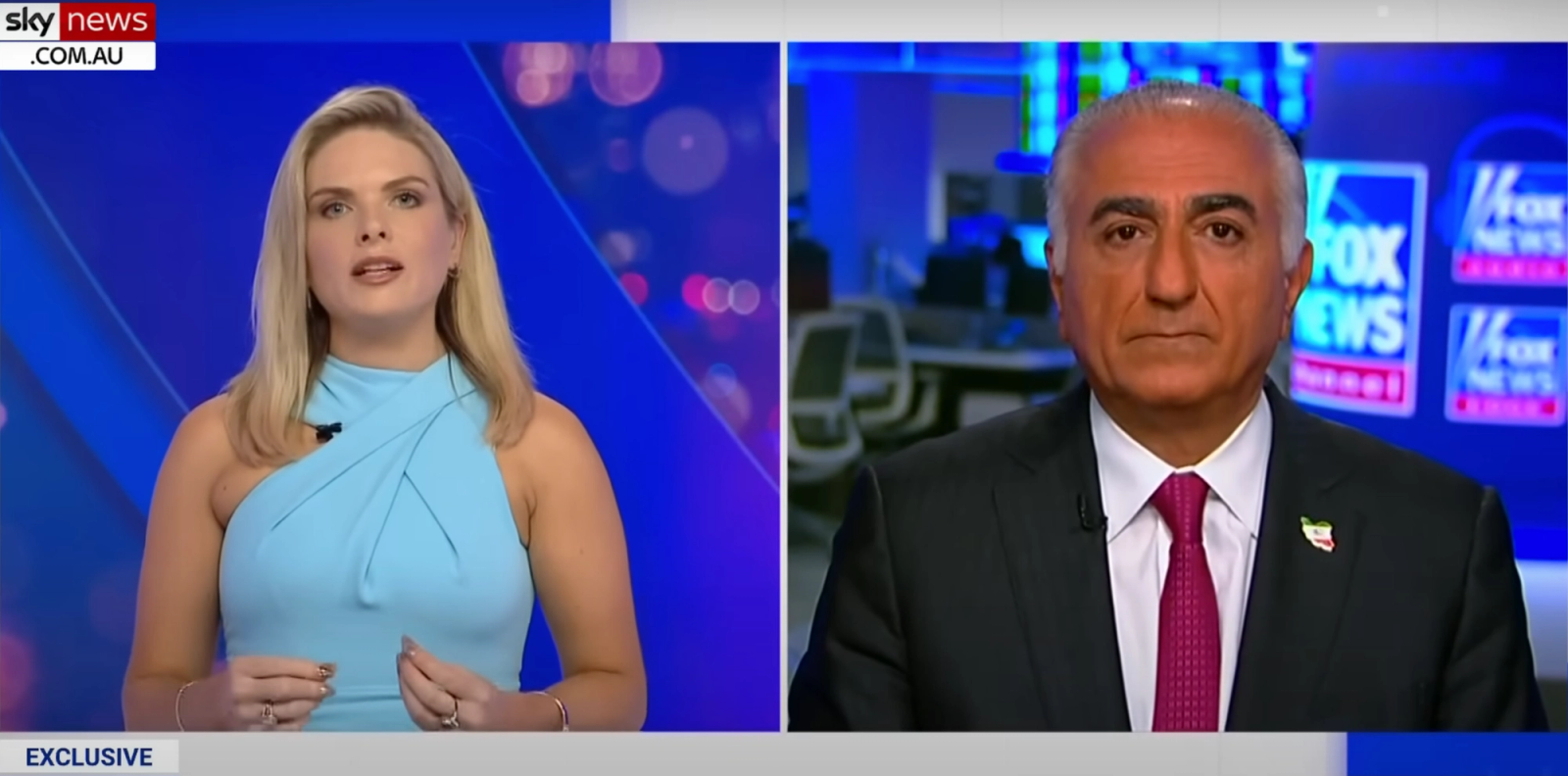 او در گفتوگویی با شبکه اسکای نیوز استرالیا علی خامنهای، رهبر جمهوری اسلامی، را نماد شر خواند و گفت خامنهای به ایران و ایرانیان اهمیت نمیدهد و ایرانیان نخستین قربانیان و گروگانهای جمهوری اسلامی بودهاند.