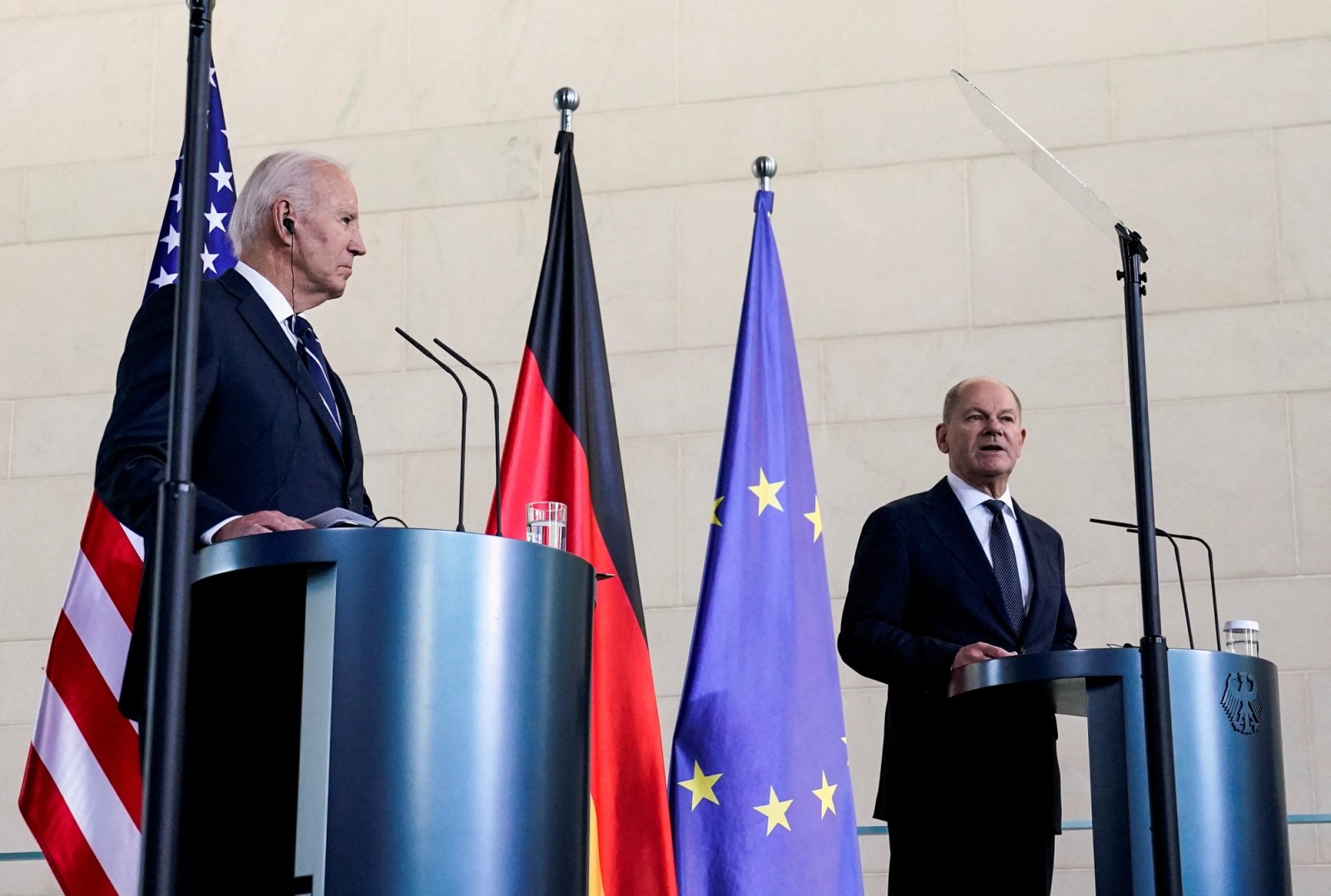 بایدن از ابتدای دوره ریاستجمهوری خود رابطه نزدیکی با آلمان ایجاد کرد و با برلین در موضوعاتی مانند پروژه خط لوله نورد استریم-۲ و افزایش هزینههای دفاعی آلمان همکاری داشت.
