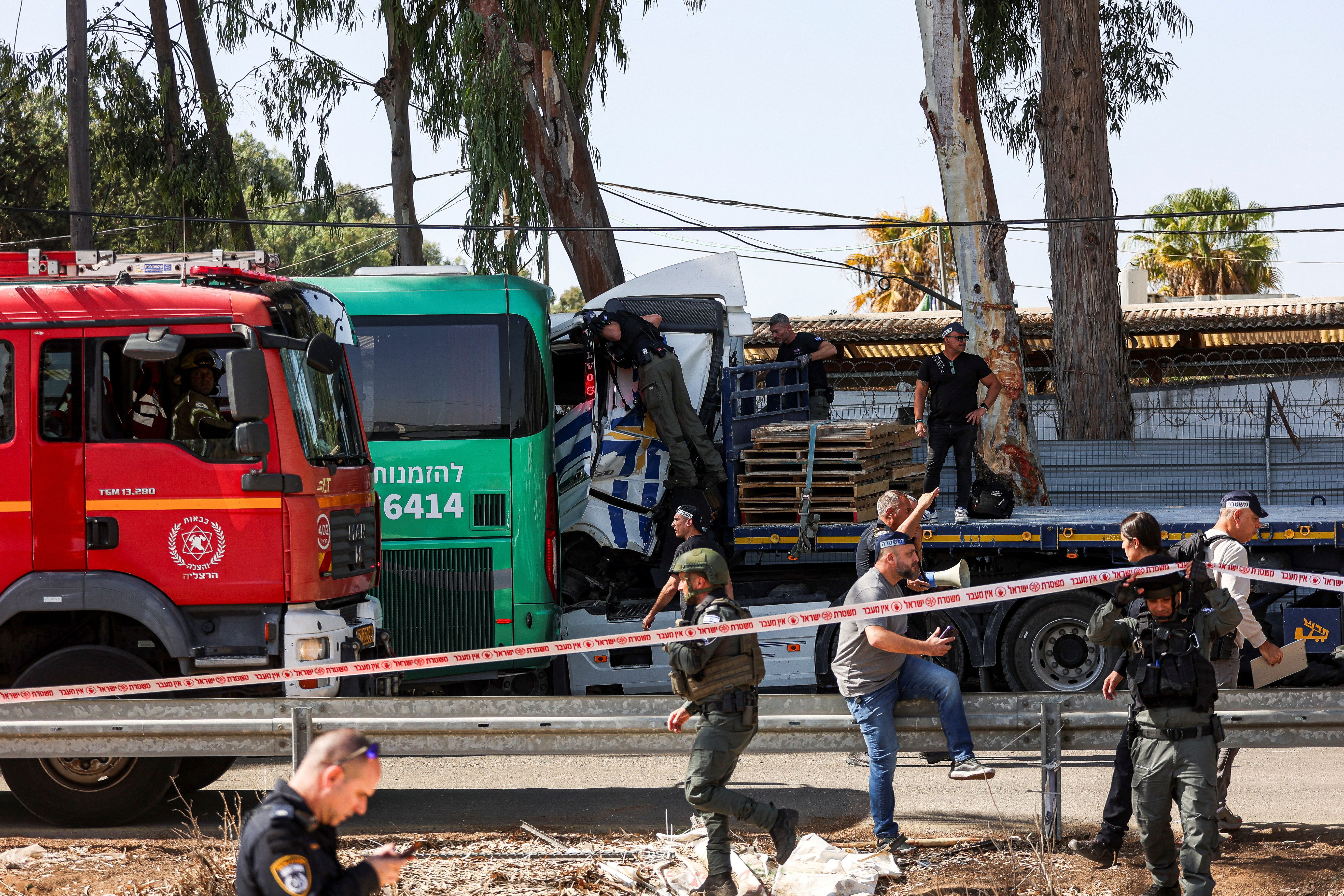 پلیس اسرائیل خبر داد که راننده کامیونی که خودروی خود را به ایستگاه اتوبوس در خارج از پایگاه گلیوت کوبید، توسط غیرنظامیان مسلح مورد اصابت گلوله قرار گرفت.