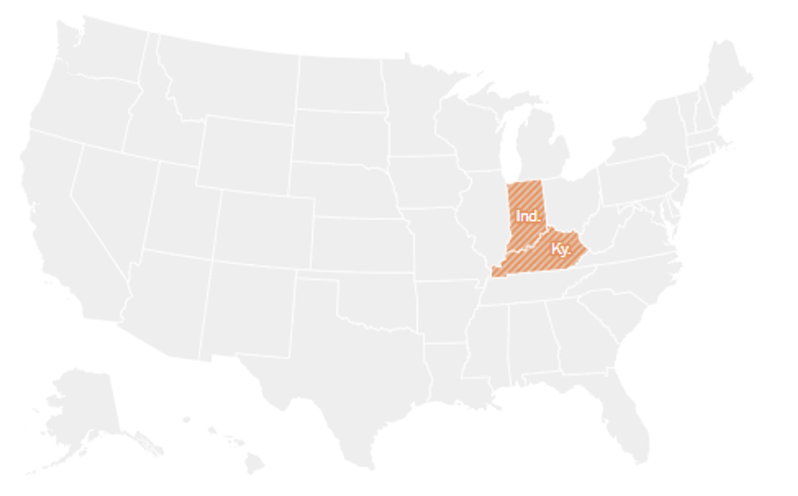 در این دو ایالت، بخش عمده‌ حوزه‌های رای‌گیری که در منطقه زمانی شرق آمریکا هستند، ساعت ۶ به وقت شرق آمریکا بسته می‌شوند اما حوزه‌های رای‌گیری در نیمه غربی کنتاکی و دو گوشه کوچک غربی ایندیانا که در منطقه زمانی مرکزی آمریکا هستند، تا ساعت ۷ به وقت شرق آمریکا باز می‌مانند.