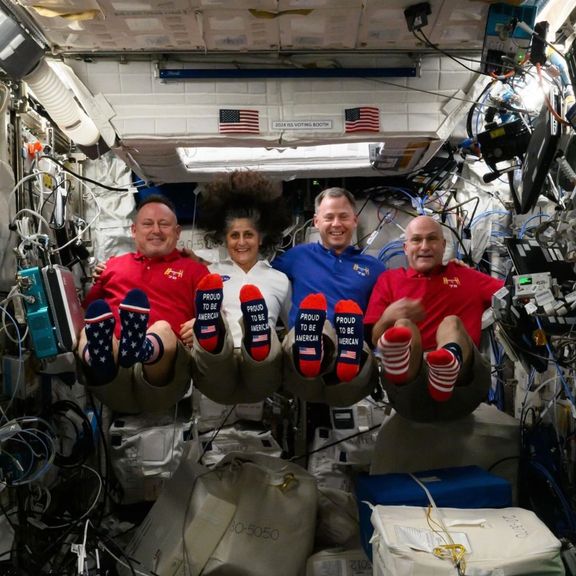 این فضانوردان ناسا در روز انتخابات عکسی از خود در اینستاگرام منتشر کردند که جورابهایی به رنگ پرچم آمریکا و شعارهای میهن پرستانه پوشیده بودند.