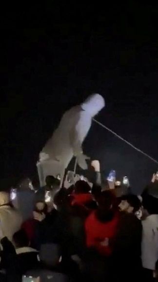 مردم سوریه مجسمه حافظ اسد، رئیسجمهور پیشین سوریه را در حمص پایین کشیدند.