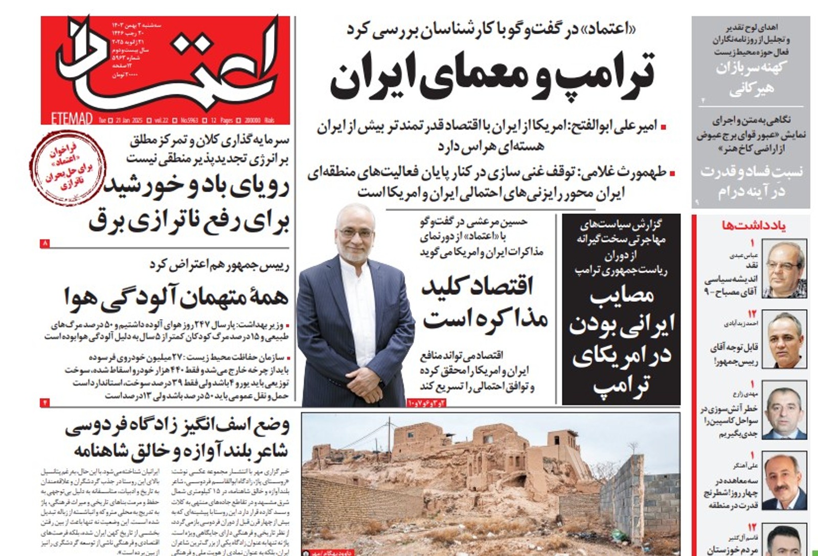 روزنامه اعتماد که متعلق به الیاس حضرتی، رییس شورای اطلاعرسانی دولت است، در چندین مطلب جداگانه، تبعات بازگشت ترامپ به قدرت را بررسی کرده است.