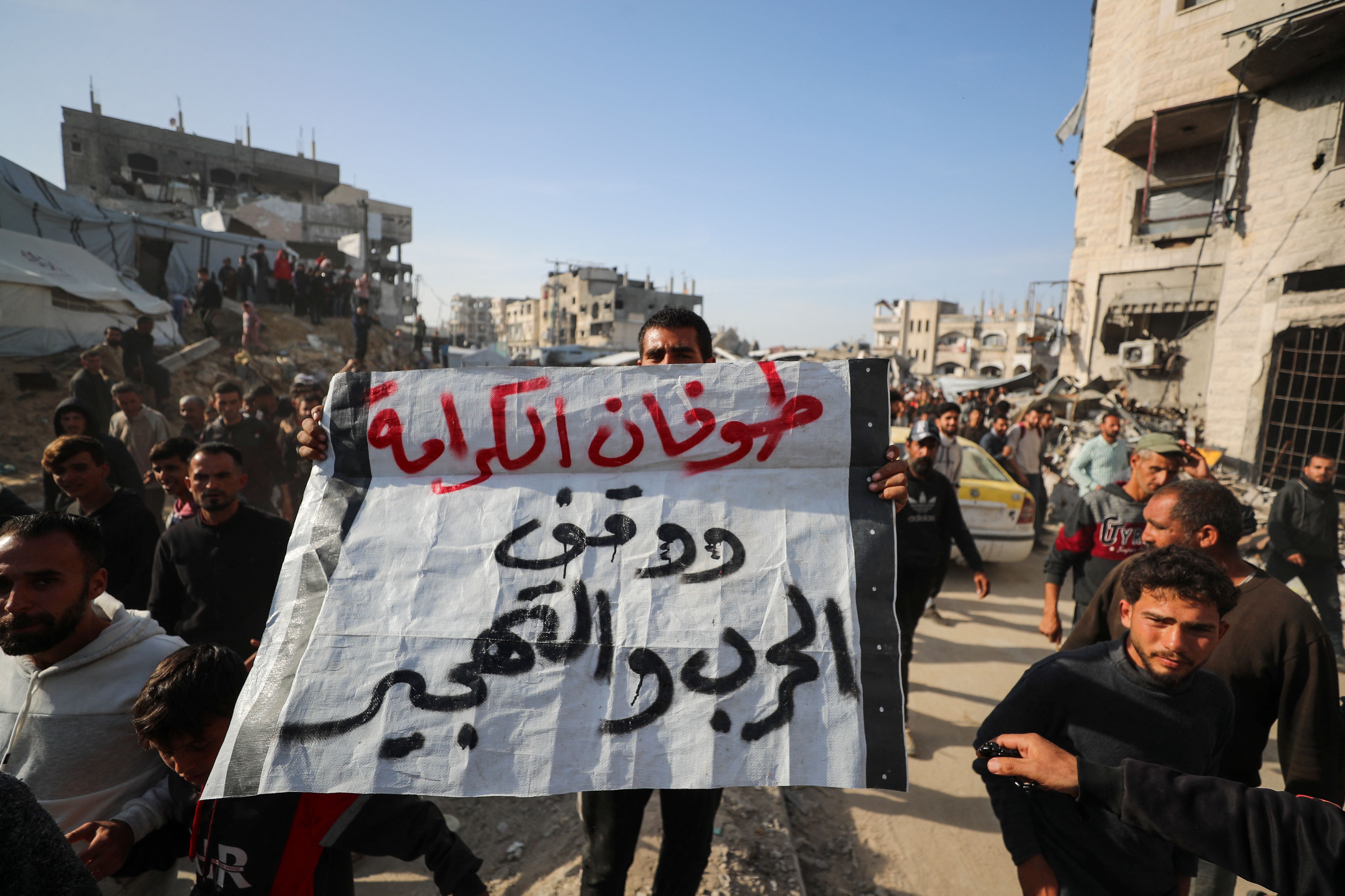 اما برخی معترضان که با رویترز صحبت کردهاند، گفتهاند که برای اعتراض به ادامه جنگ به خیابانها آمدهاند و از کمبود شدید مواد غذایی و آب رنج میبرند.