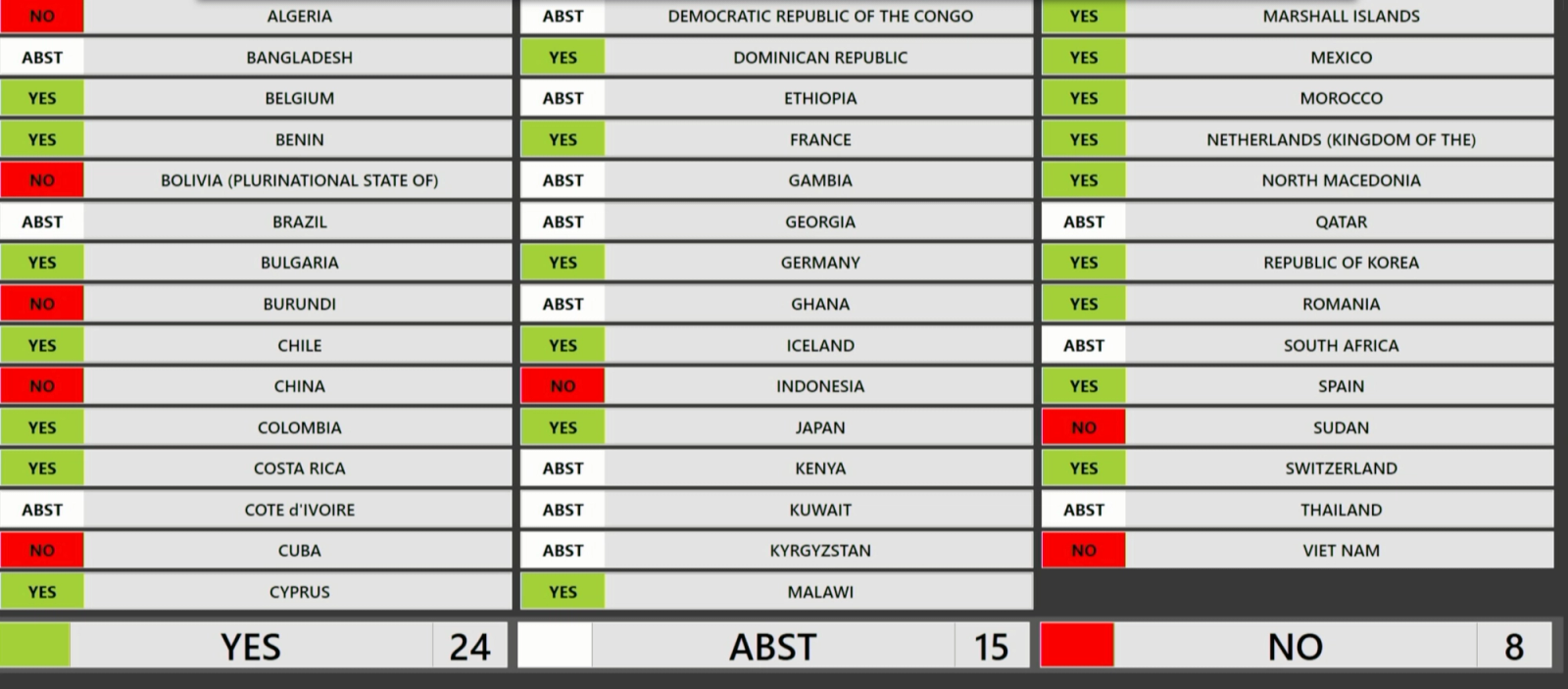 در جریان رایگیری برای این قطعنامه چند کشور در موافقت و مخالفت با متن آن صحبت کردند.